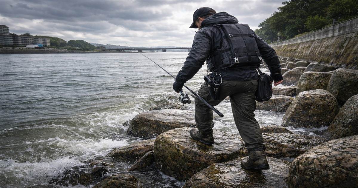 特に堤防や護岸での釣行時は、滑り止めのついた靴やライフジャケットを必ず着用しましょう。