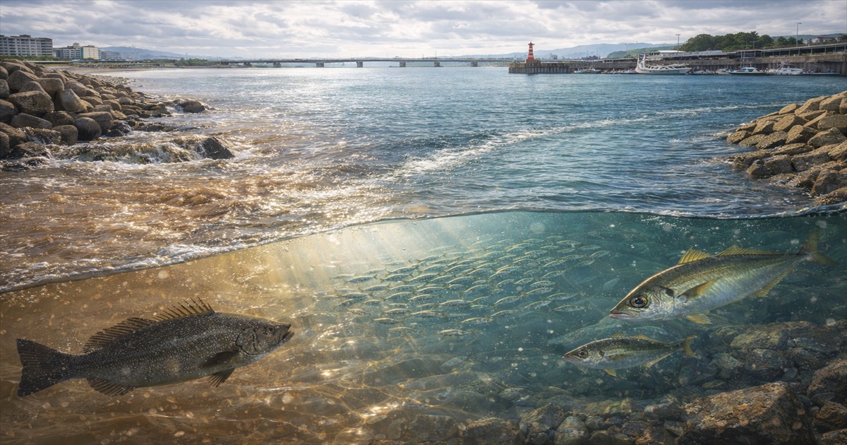 | シーバス(スズキ) | 濁りを好み、流れ込み周辺で小魚を狙う | 河口、堤防、流れ込みのある港湾部 |
