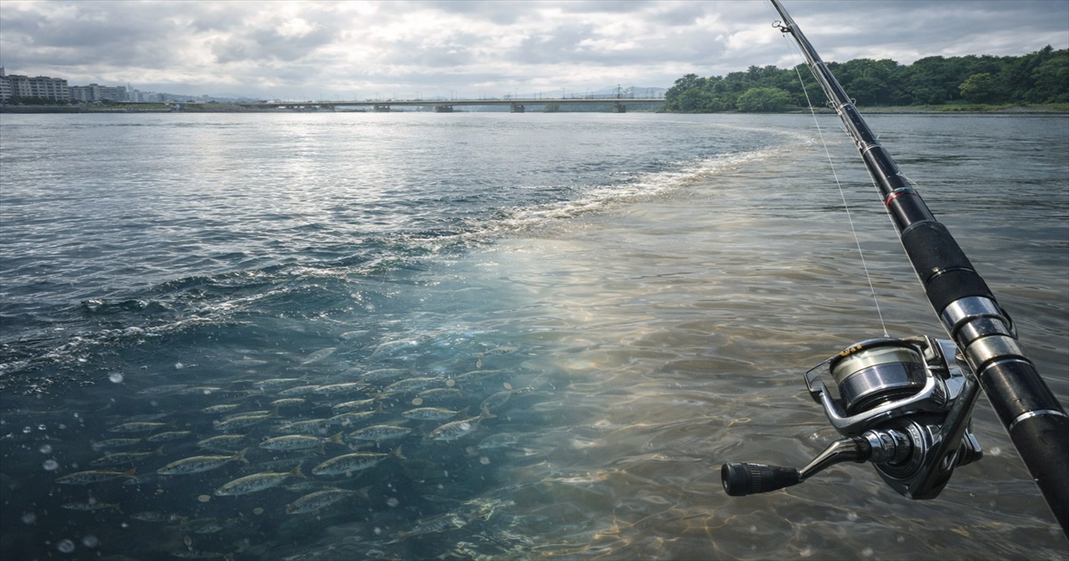 海釣りでは、雨後にできる“流れ込みライン”を見逃さないことがポイントです。